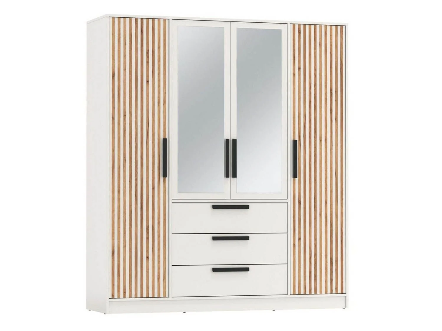 Две центральные дверцы с зеркальными вставками.