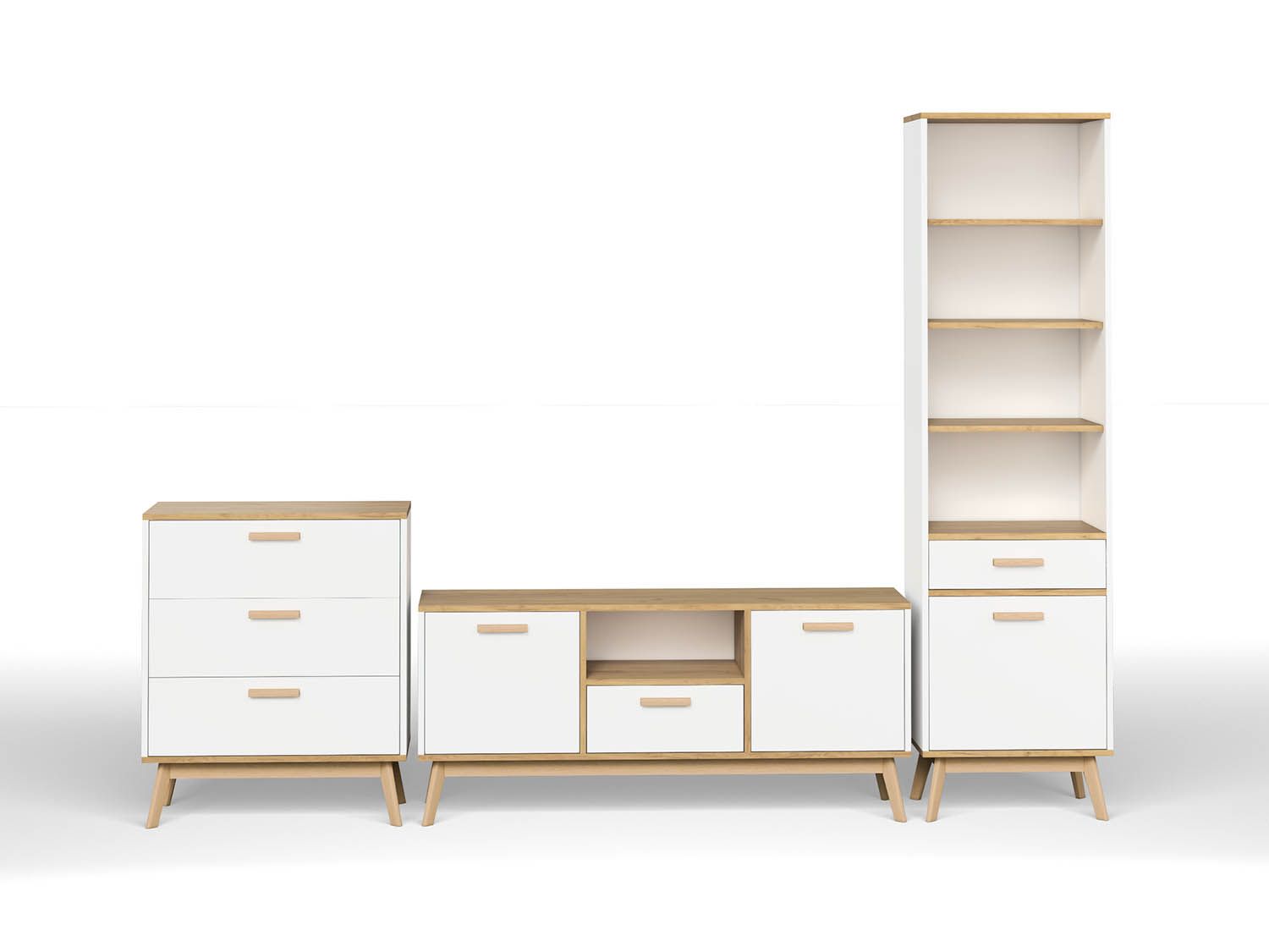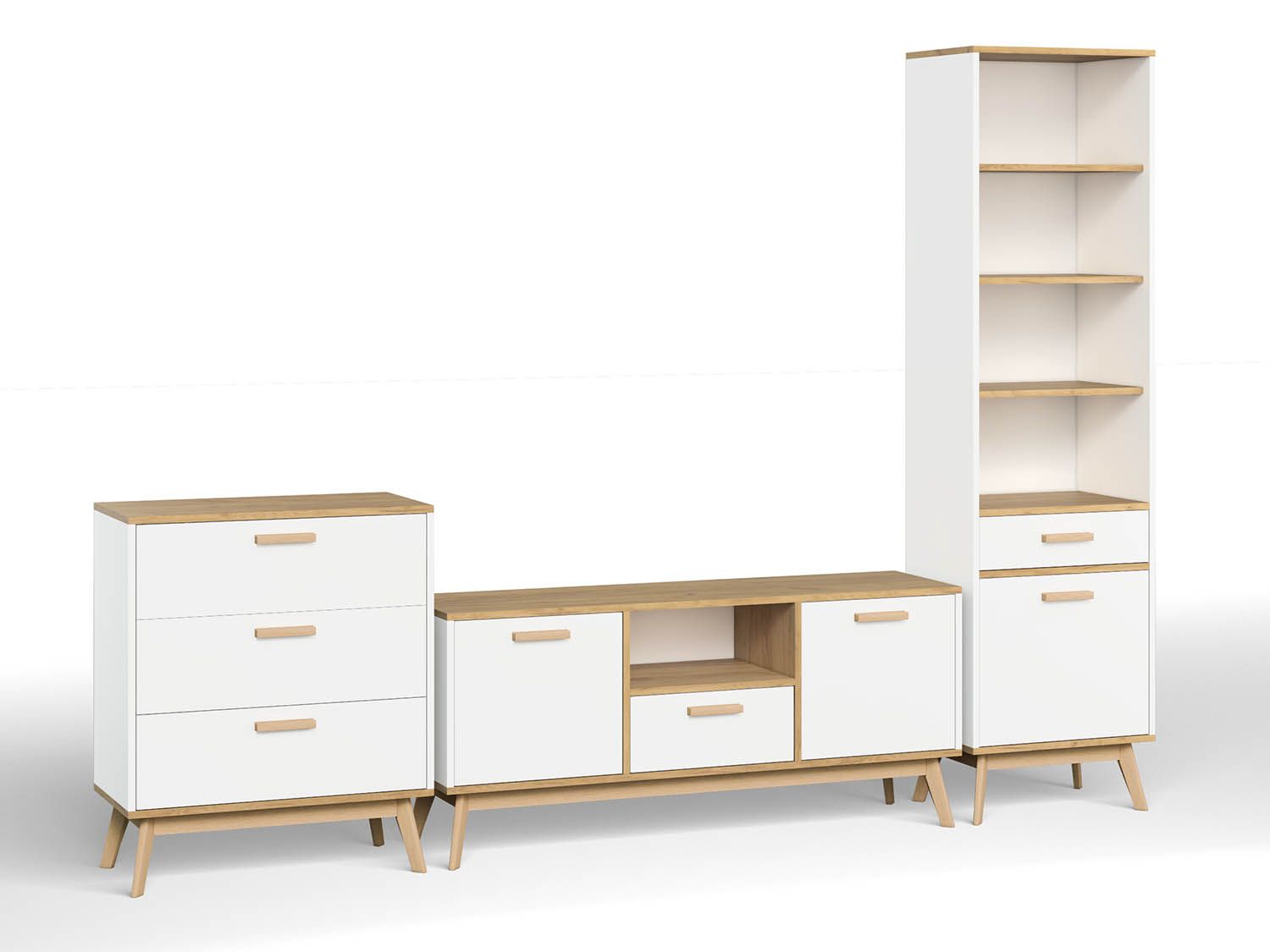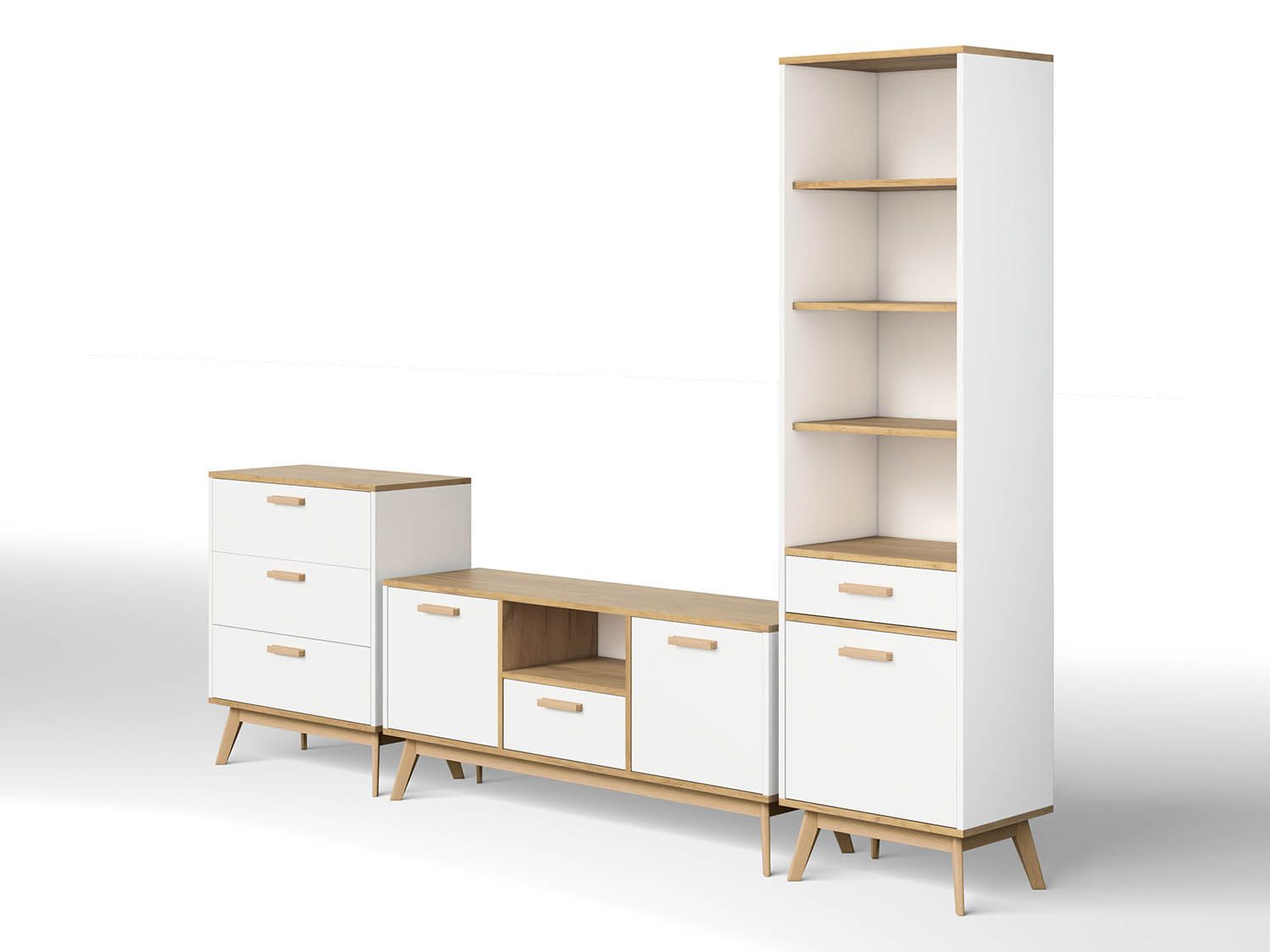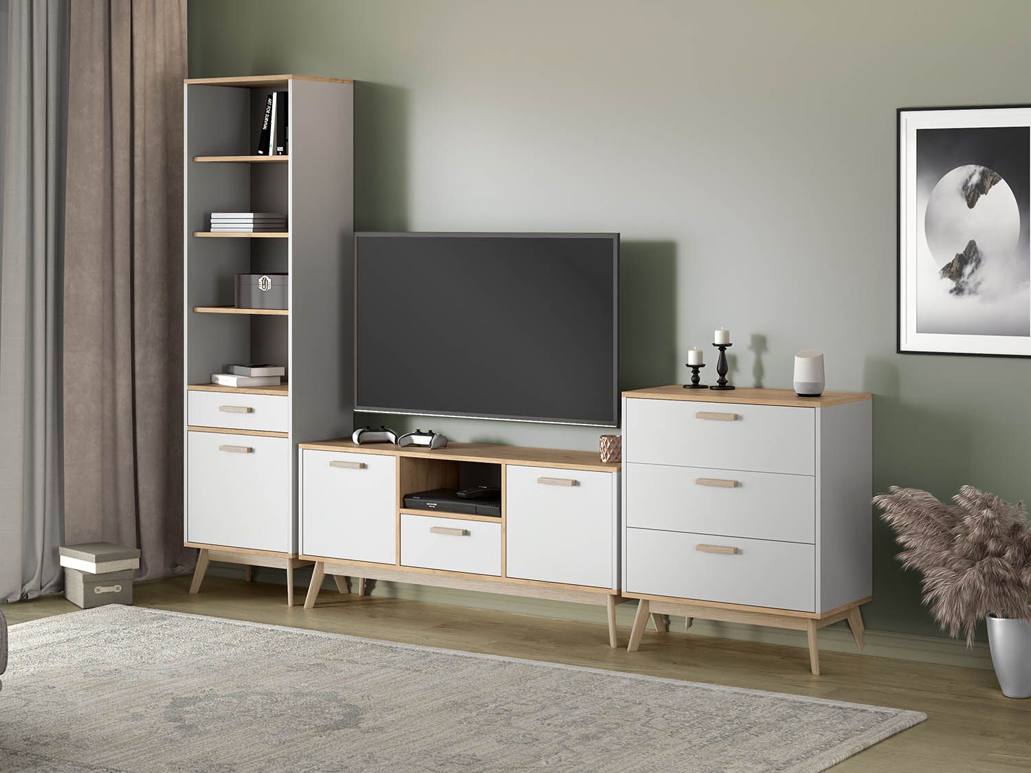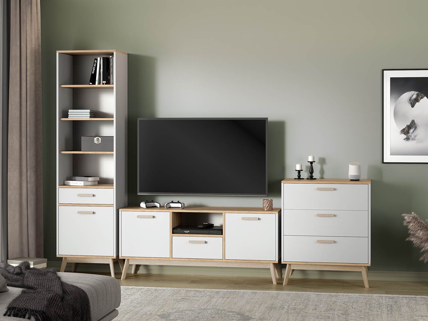 Алатея гостиная Дуб золотой/Белый — яркий и стильный набор мебели для размещения теле техники и сопутствующих предметов.