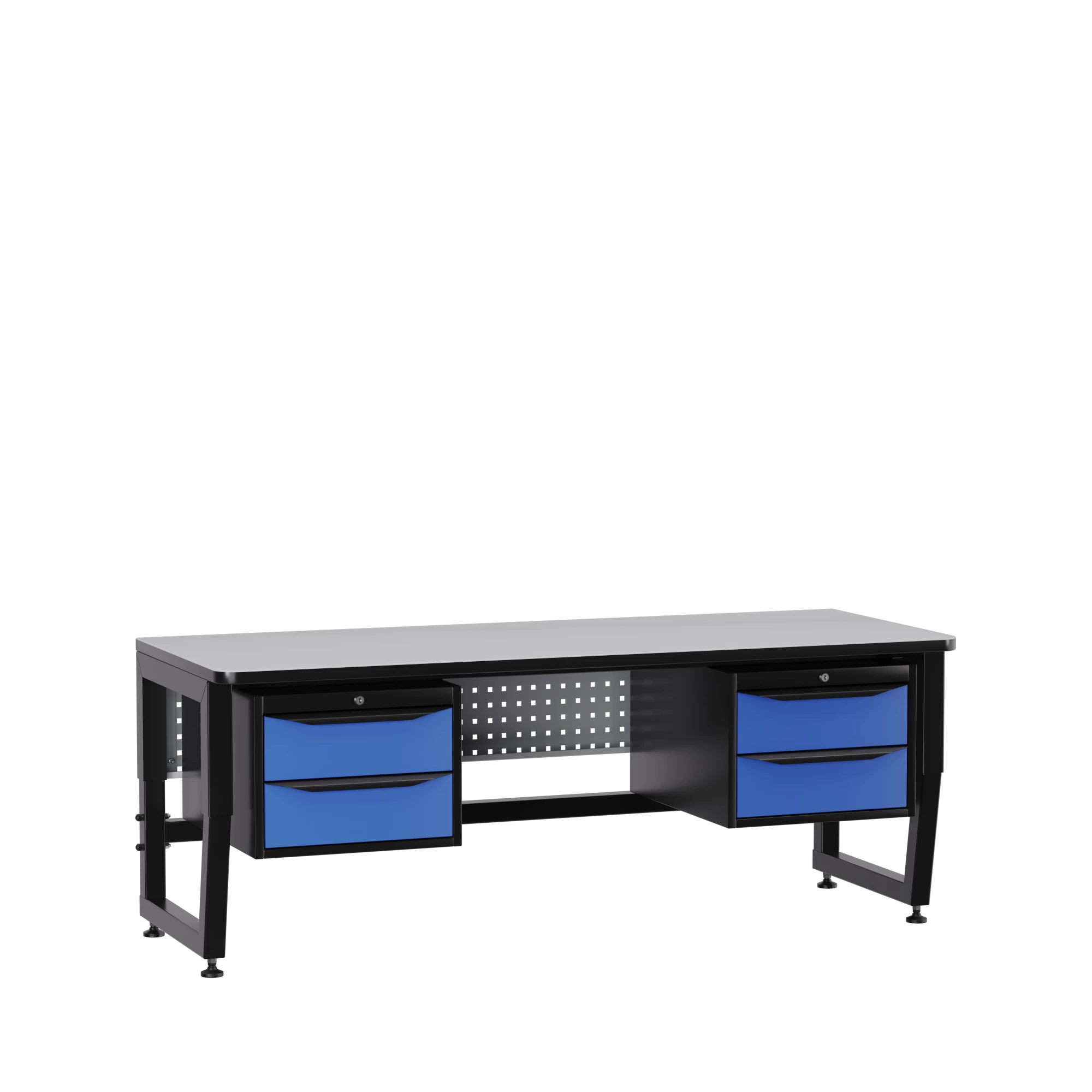 Несущая конструкция стола – это промышленный ESD каркас. Сочетание опорных, несущих и усиливающих элементов из металла, обеспечивают высокую надежность конструкции при интенсивной промышленной эксплуатации с распределенными нагрузками на рабочее место до 500 кг. Регулируемые опоры с возможностью плавной регулировки по высоте позволяют установить удобную высоту рабочей поверхности от 700мм до 850мм. Специальное ESD полимерное покрытие элементов каркаса с сопротивлением 1 МОм обеспечивают антистатические свойства изделия