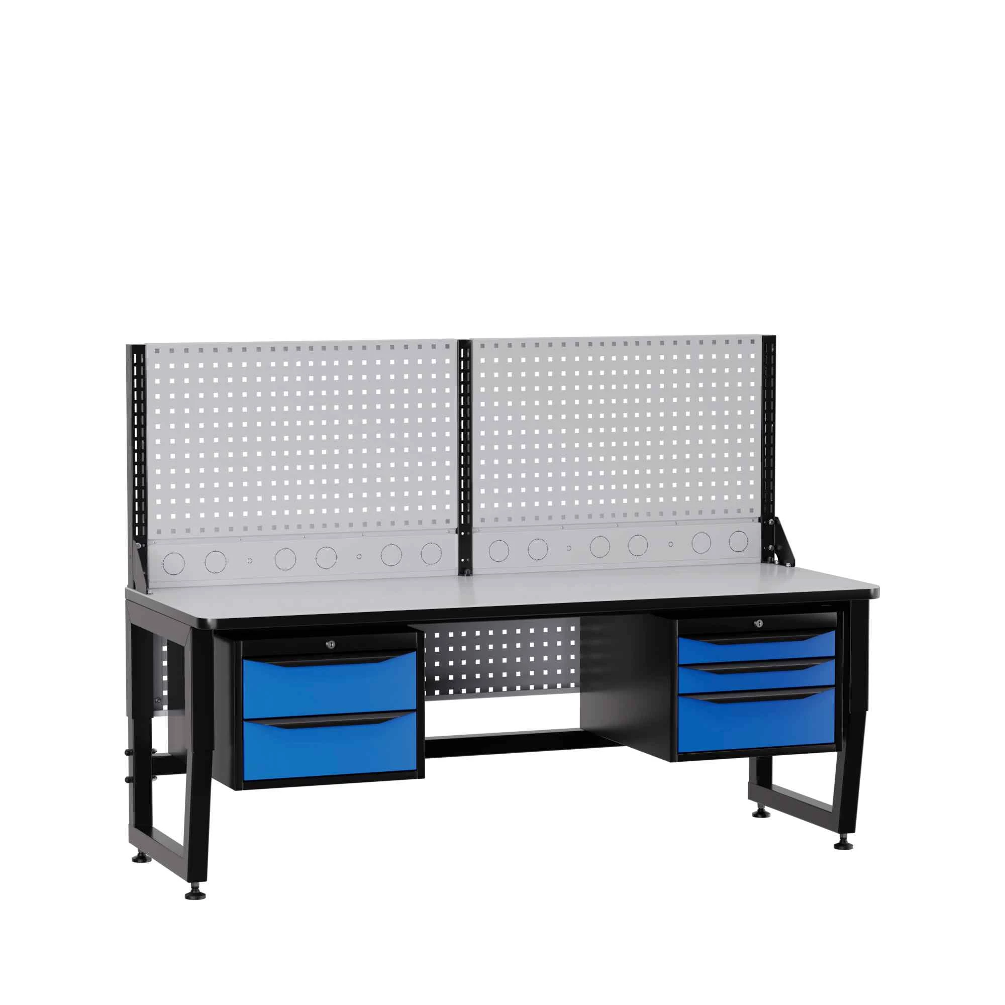 Поверхность антистатического стола выполнена из специального сертифицированного ESD пластика толщиной 1 мм, что гарантирует плавное стекание электростатического заряда и соответствует всем нормам ESD безопасности при работе с электронными компонентами. Нижняя часть столешницы изготовлена из БСП пластика толщиной 1 мм, а кромка покрыта ABS пластиком толщиной 2 мм, что обеспечивает дополнительную износостойкость и прочность всей конструкции.