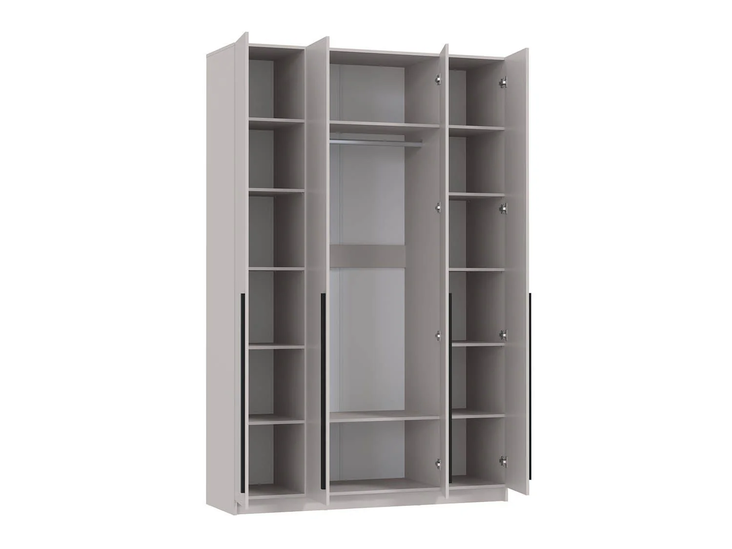 Внутри полки и горизонтальная штанга для плечиков с одеждой.