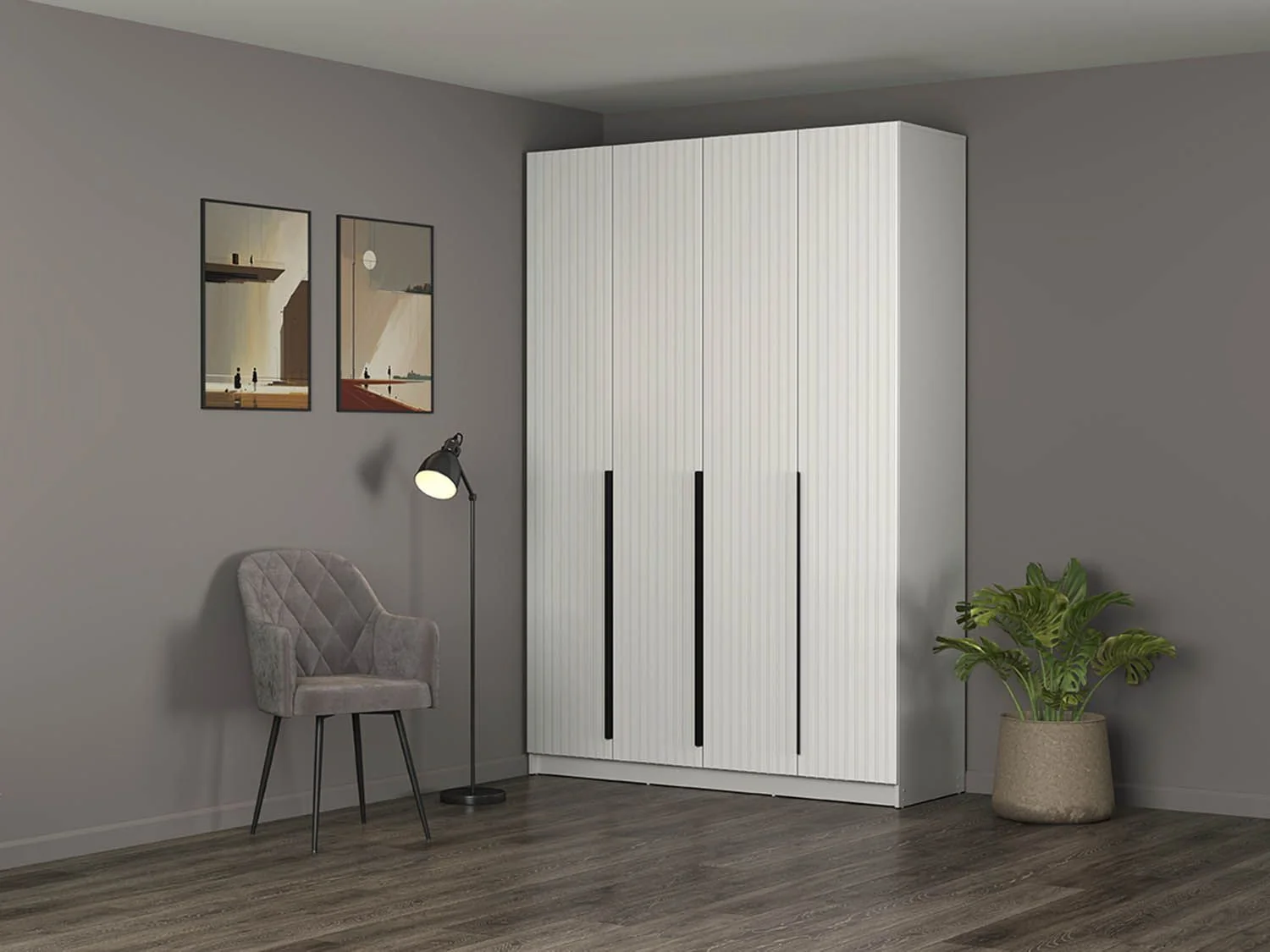 Модель имеет 4-е глухие распашные дверцы.