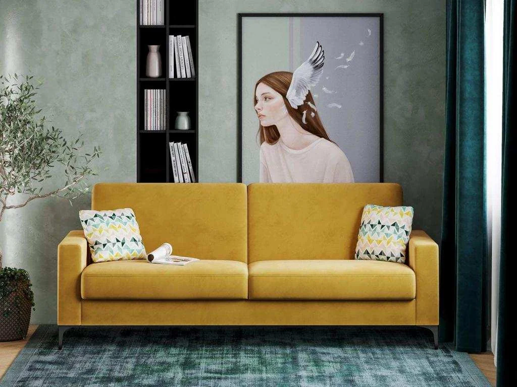 Диван-кровать Алекс 3Т модель 047 Геометрия 69/Ультра Мустард отлично подойдет для интерьера современной гостиной комнаты.