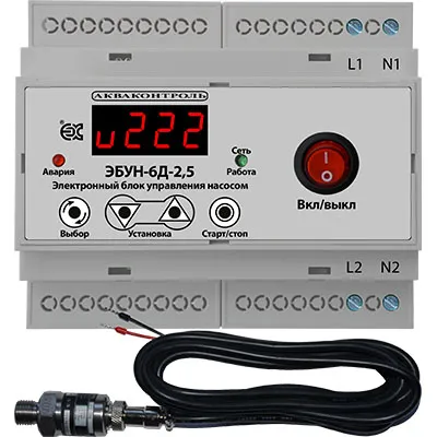EXTRA® Акваконтроль ЭБУН-6Д Электронный блок управления насосом с выносным датчиком давления 4-20 мА с плавным пуском