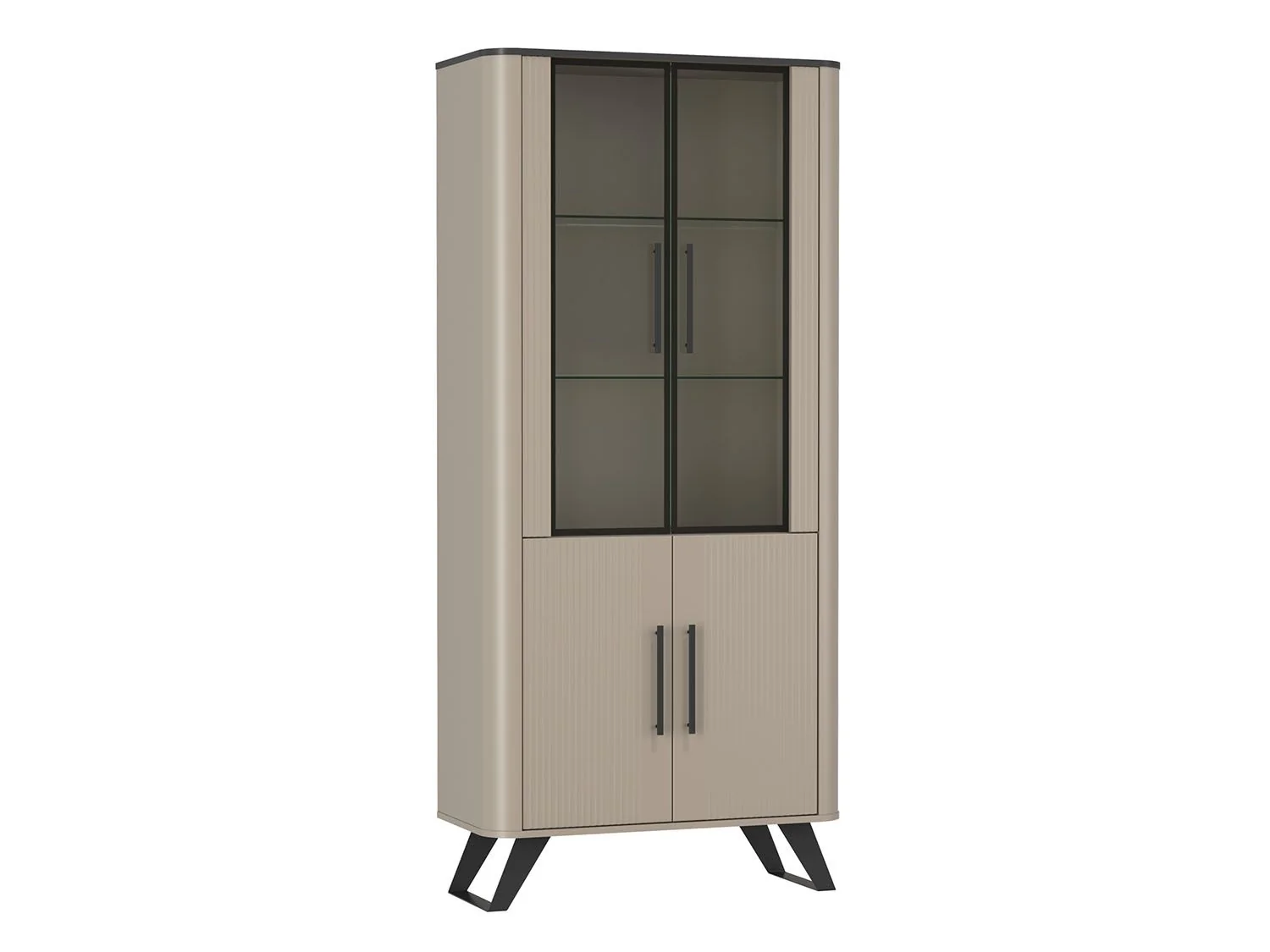 Фиделия шкаф витрина 76.01 серый камень / мрамор черный — яркое и современное изделие для гостиной комнаты.