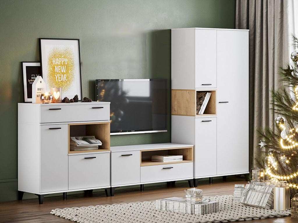 Гостиная Bergen 1 белый/Дуб Бунратти — современный набор мебели для гостиной комнаты.