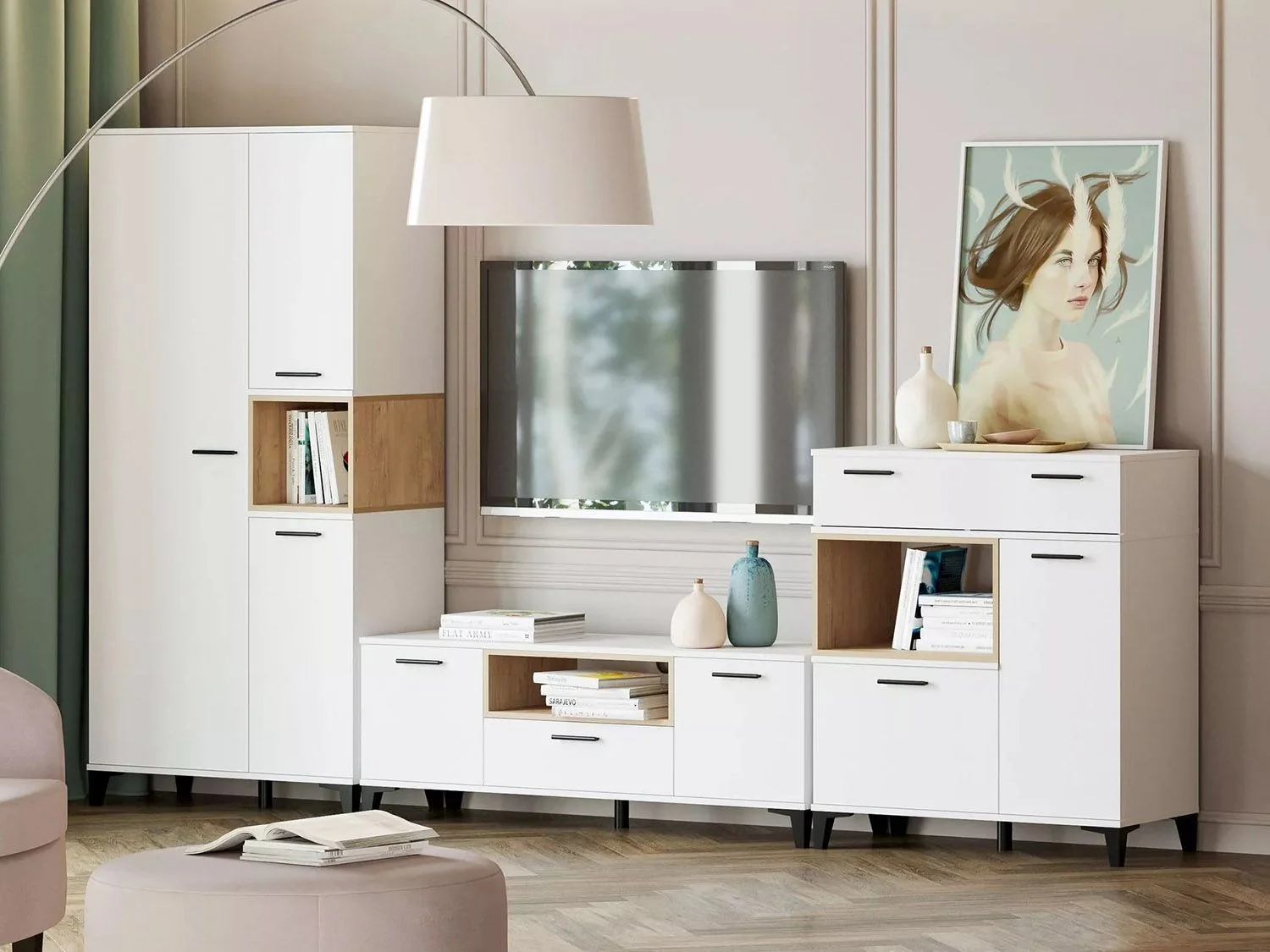 Гостиная Bergen 2 белый/Дуб Бунратти — стильный комплект для гостиной комнаты.