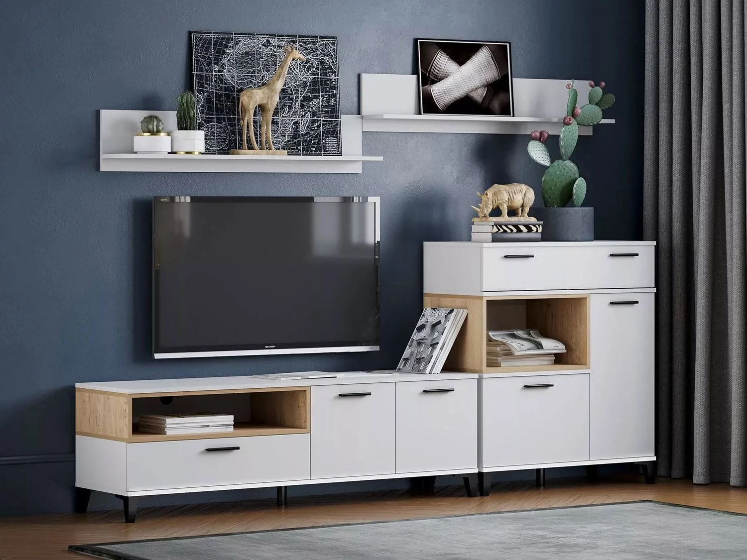 Гостиная Bergen 3 белый/Дуб Бунратти — современный набор мебели для гостиной комнаты.