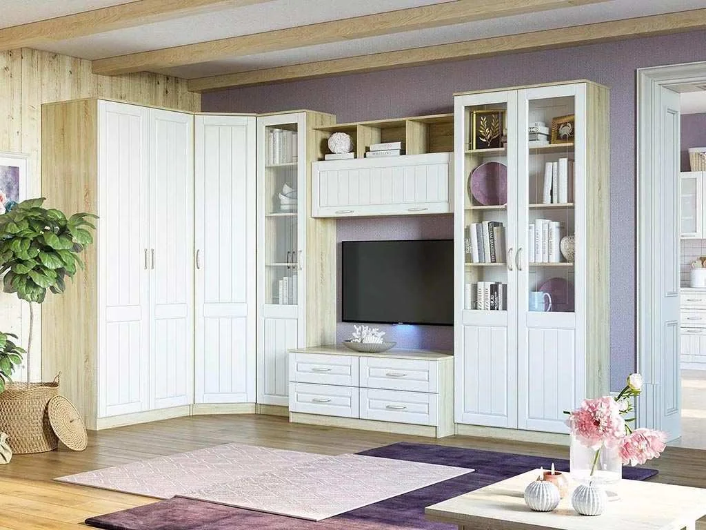 Гостиная Оливия 3 Дуб Сонома/белое дерево — это красивый и современный, угловой гарнитур для гостиной комнаты.