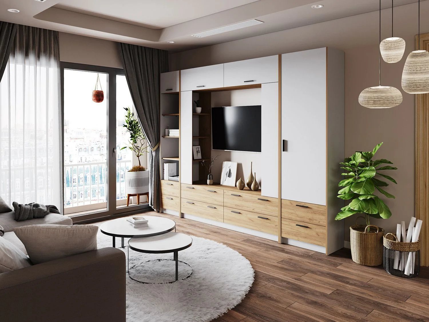 Гостиная Оттавия 1 Белый/Дуб золотой — стильный вариант набора для жилой комнаты.