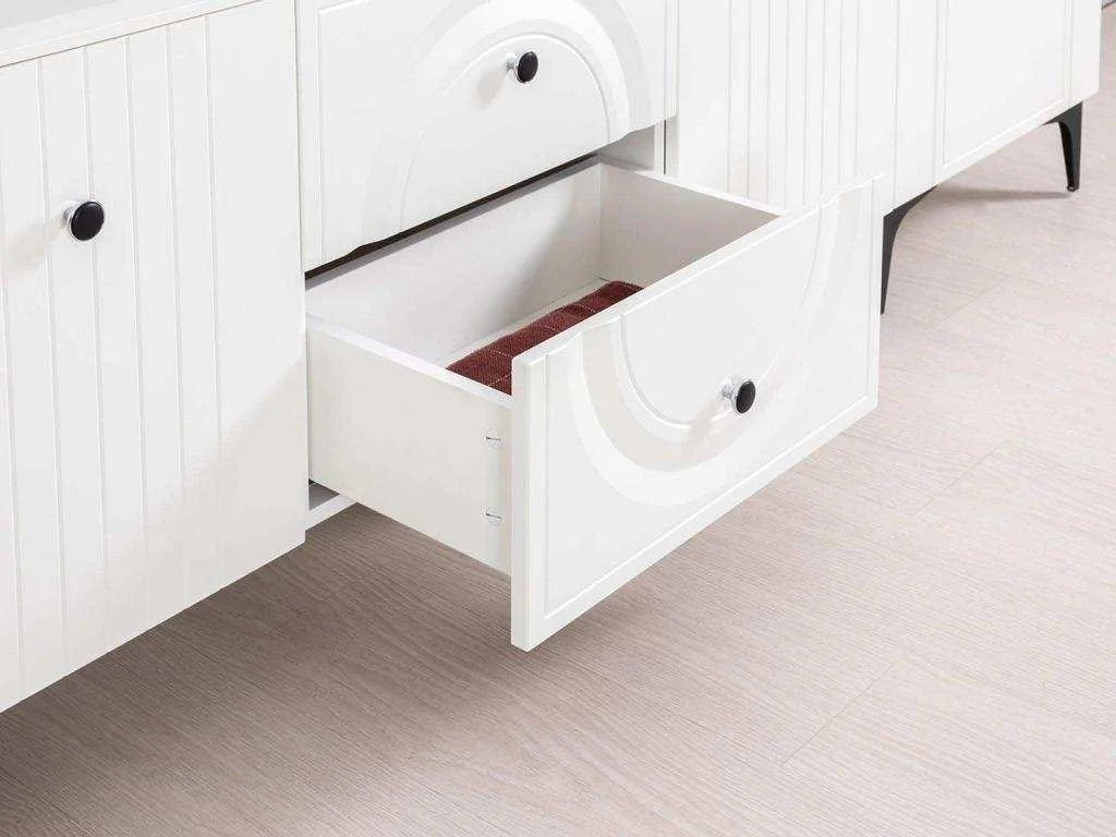 Тумба оборудована выдвижными ящиками скрытого монтажа.