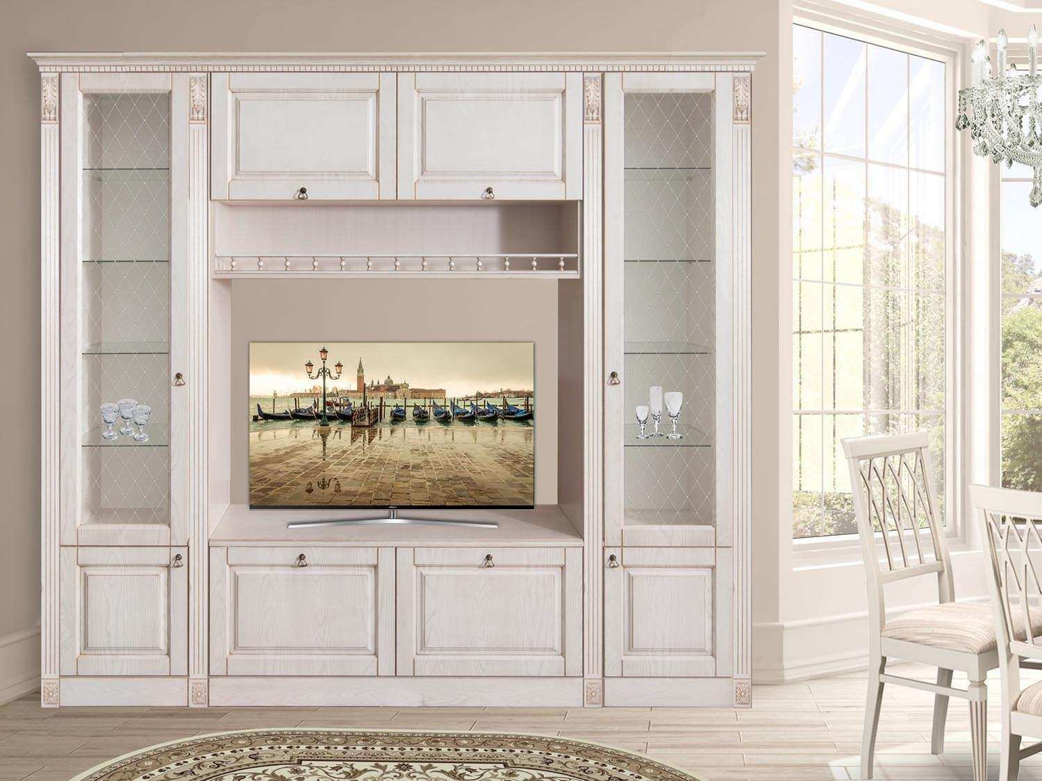 Гостиная Вероника-1 бодега светлый/ясень патина — это яркий классический комплект мебели для гостиной комнаты.