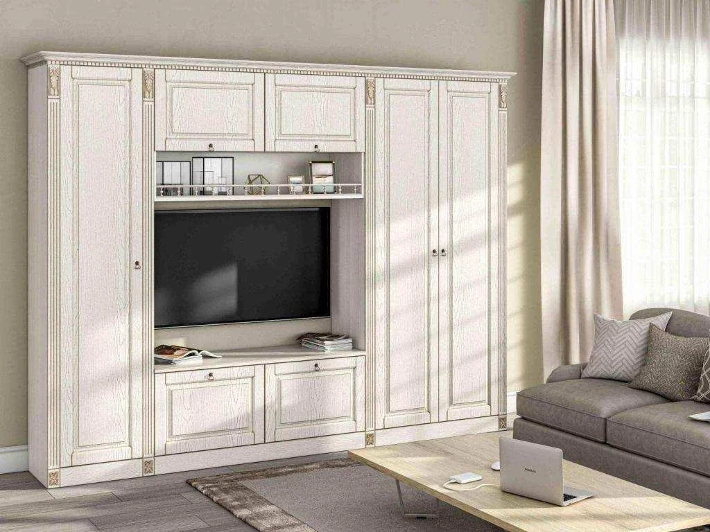 Гостиная Вероника-5 бодега светлый/ясень патина — это яркий классический комплект мебели для гостиной комнаты.
