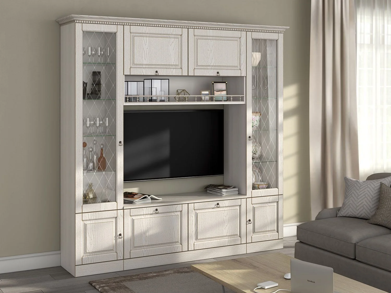 Гостиная Вероника-8 бодега светлый/ясень патина — это яркий классический комплект мебели для гостиной комнаты.