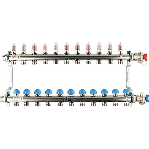 — Состоит из двух распределительных труб 1″ — подающей и отводящей линии, подключение возможно с обеих сторон.