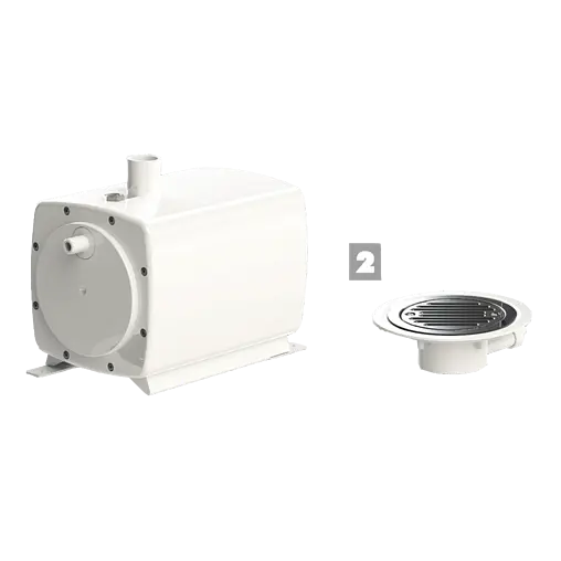 Sanifoor 2 — санитарный насос для душевой кабины. Насос позволяет организовать принудительную канализацию в душевых кабинах с гибким поддоном. Sanifoor 2 — компактное устройство, состоящее из двух частей — насоса и сифона. Канализационный насос для душа включается автоматически в том случае, если вода попадает в сифон. Sanifoor быстро и эффективно отводит стоки к стационарной канализации. Полезная особенность — режим быстрого откачивания воды, т. е. любое количество жидкости будет транспортировано в слив.