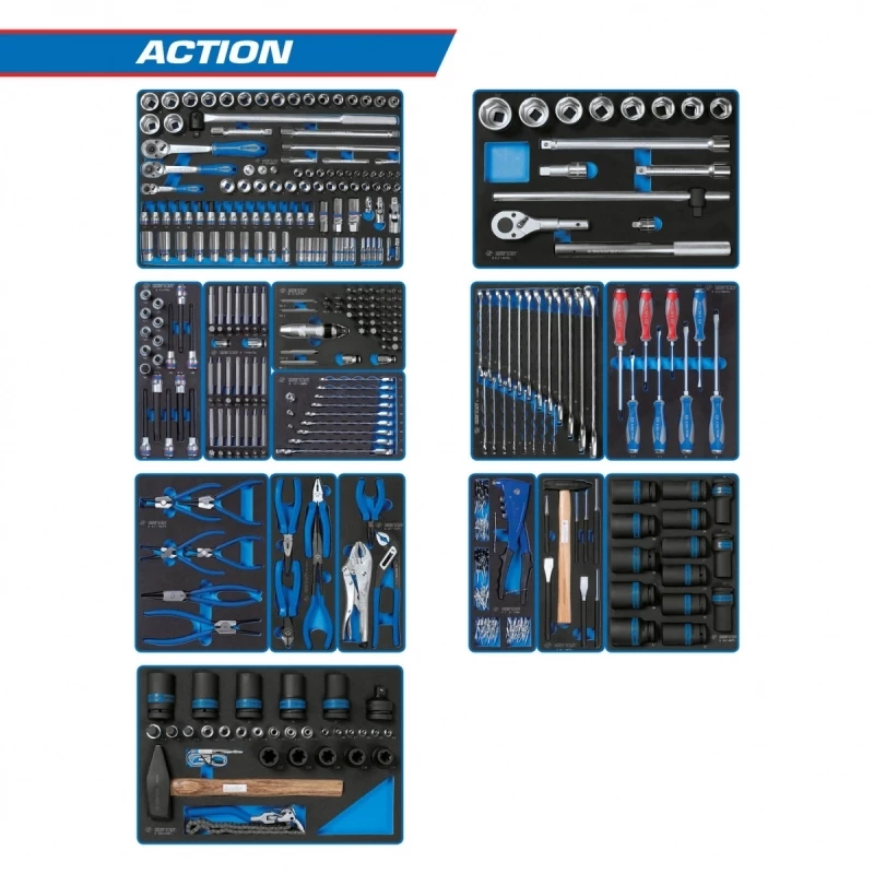 KING TONY Набор инструментов ACTION для тележки, 15 ложементов, 327 предметов