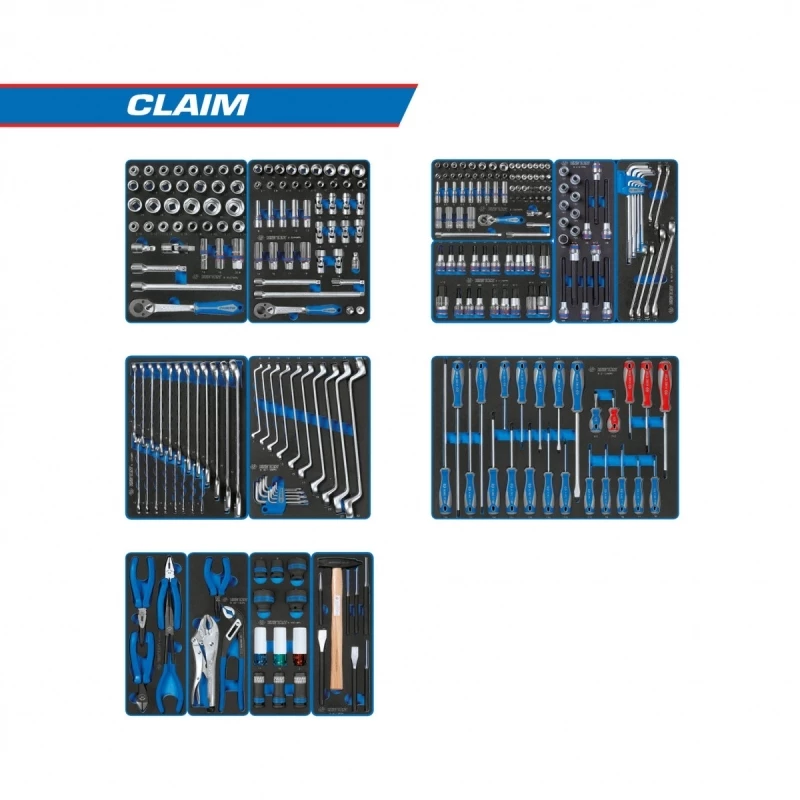 KING TONY Набор инструментов CLAIM для тележки, 13 ложементов, 286 предметов