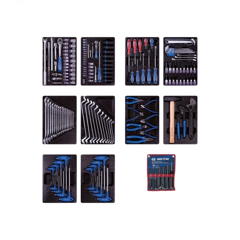 KING TONY Набор инструментов для тележки, 10 ложементов, 173 предмета
