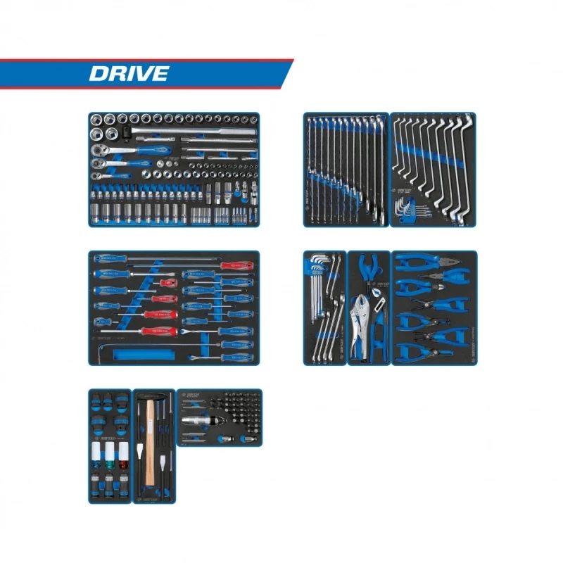 KING TONY Набор инструментов DRIVE для тележки, 10 ложементов, 251 предмет