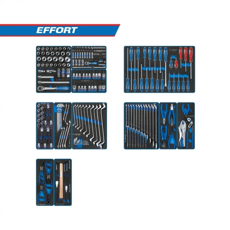 Стандартизация размерности ложементов позволяет разместить наборы на ваше усмотрение в любом варианте организации рабочего пространства – по типу, назначению или частоте использования. Вы всегда будете иметь под рукой тот инструмент или приспособление, которое вам необходимо в данную минуту, а ячейки ложементов позволят содержать набор в полном порядке.