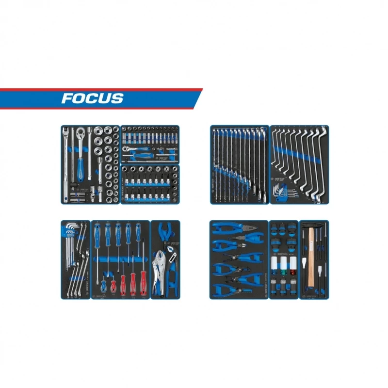 KING TONY Набор инструментов FOCUS для тележки, 11 ложементов, 188 предметов