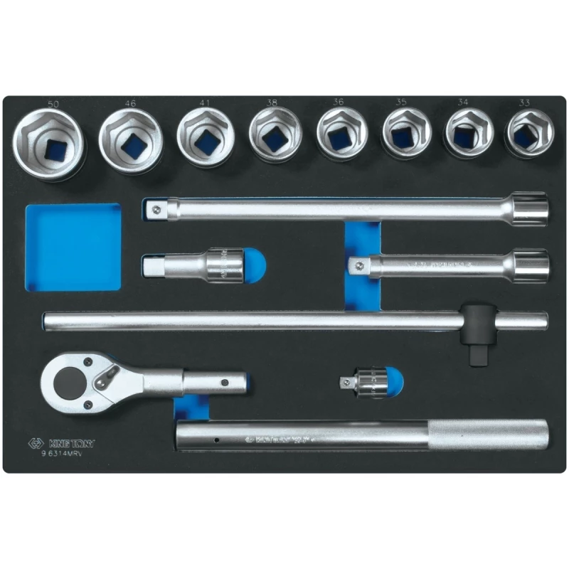 KING TONY Набор торцевых головок 3/4 с принадлежностями, ложемент, 14 предметов
