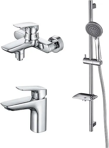 | КОМПЛЕКТАЦИЯ | 1. Cмеситель для раковины 2. Смеситель для ванны 3. Душевой гарнитур 3jet |