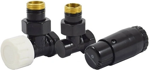 Комплект вентилей терморегулирующих угловых ½» в/н Schlosser Standard Mini черный 602200056 Ral 9005
