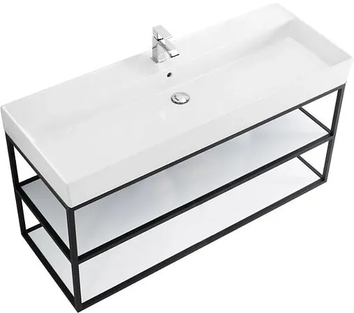 Консоль двухъярусная с умывальником подвесная Cezares Cadro 120 чёрный/белый CADRO-120/46/58-2C-SO-MET-ST+CADRO-120-MENS-BIANCO+CADRO-120-MENS-BIANCO