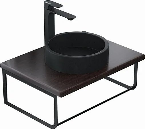 Комплект с раковиной для ванной комнаты в состав которого входит подвесная столешница Uperwood Tanos, накладная раковина из бетона Uperwood и кронштейны для подвесного монтажа конструкции. Комплекты представлены со столешницами различной ширины от 60 до 100 см. Цвет столешниц бук светлый и бук темный. Бетонная раковина Uperwood Round или Uperwood Rome черного цвета.
