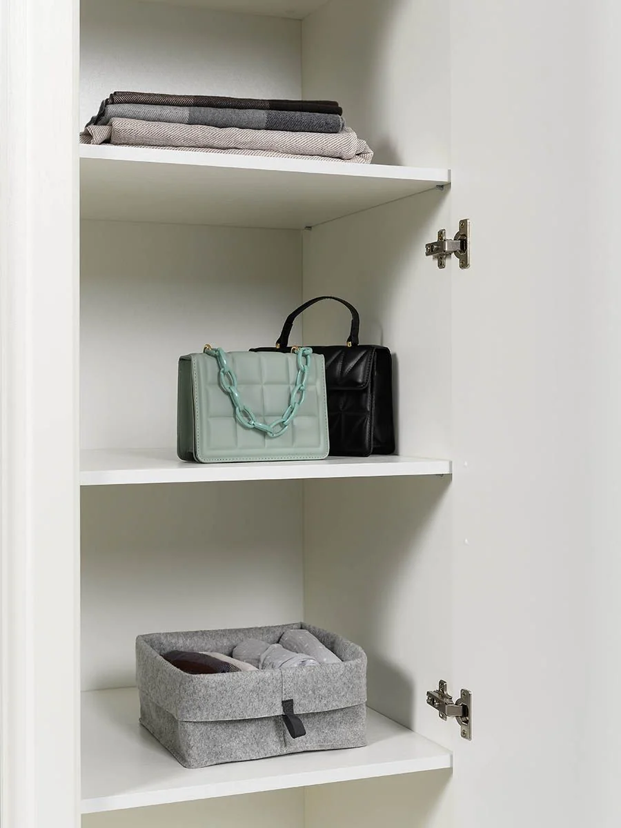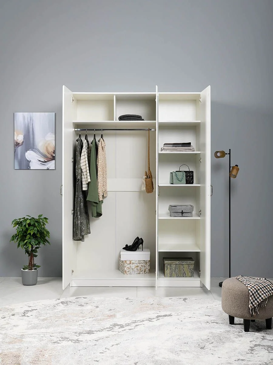 Система хранения шкафа состоит из двух отделов с распашными дверцами.