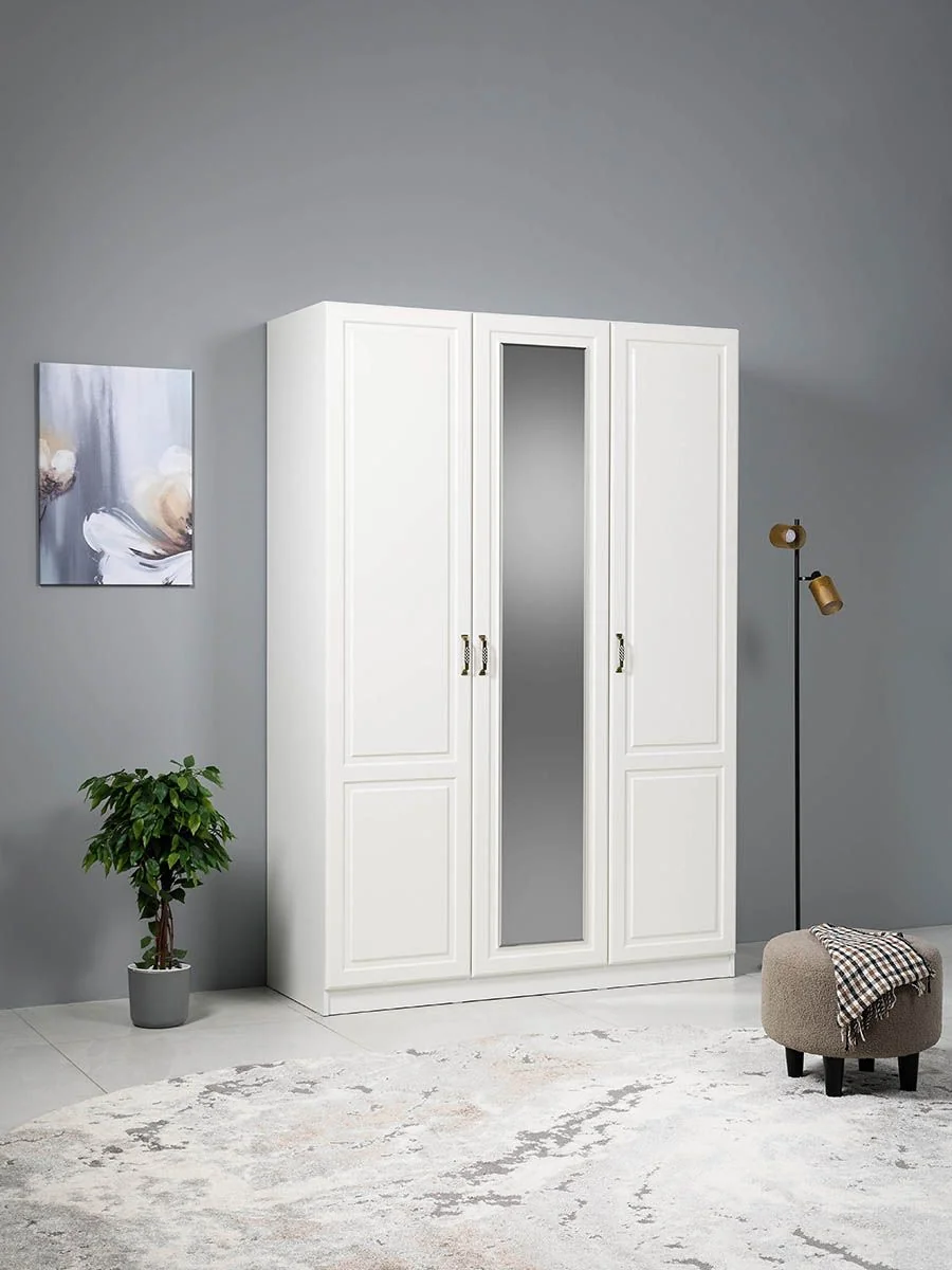 Большое зеркало установленное на центральную створку шкафа, позволит увидит себя в полный рост.