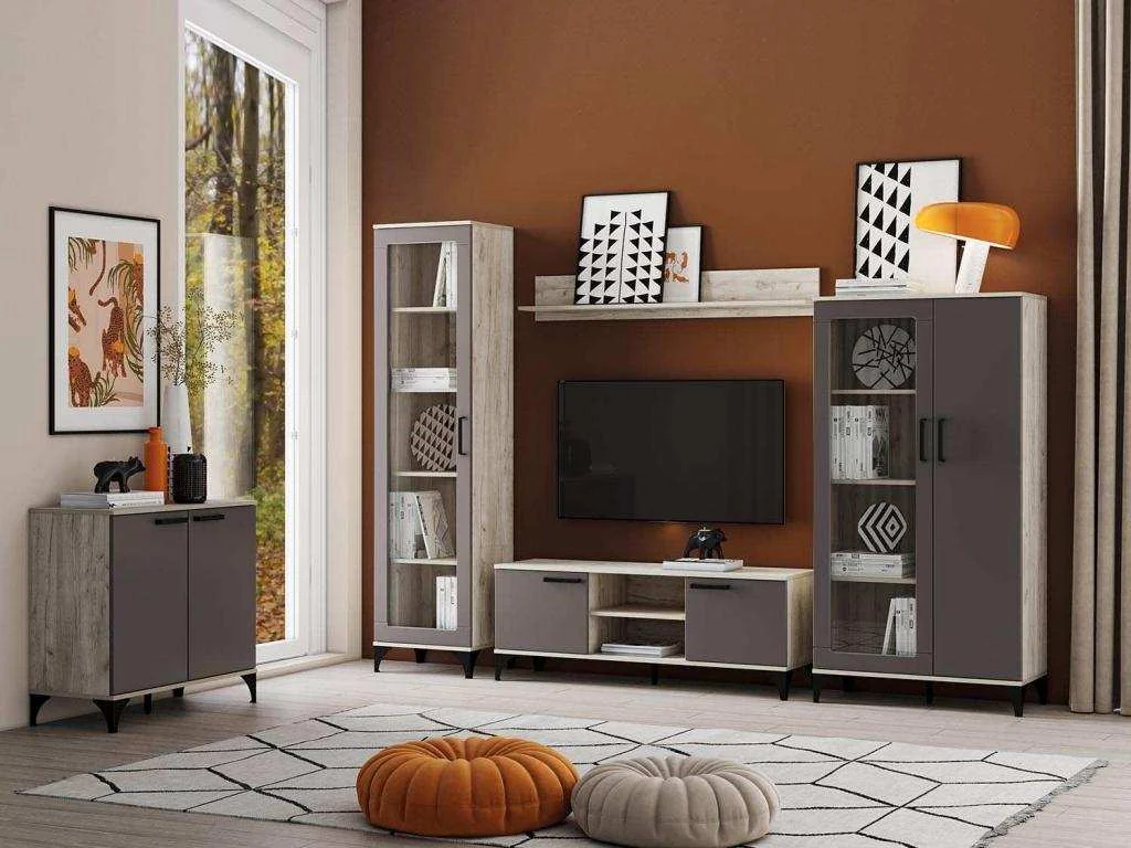 Марсель гостиная комплектация 1 Дуб Крафт серый/Софт графит — яркий и современный гарнитур для гостиной комнаты.