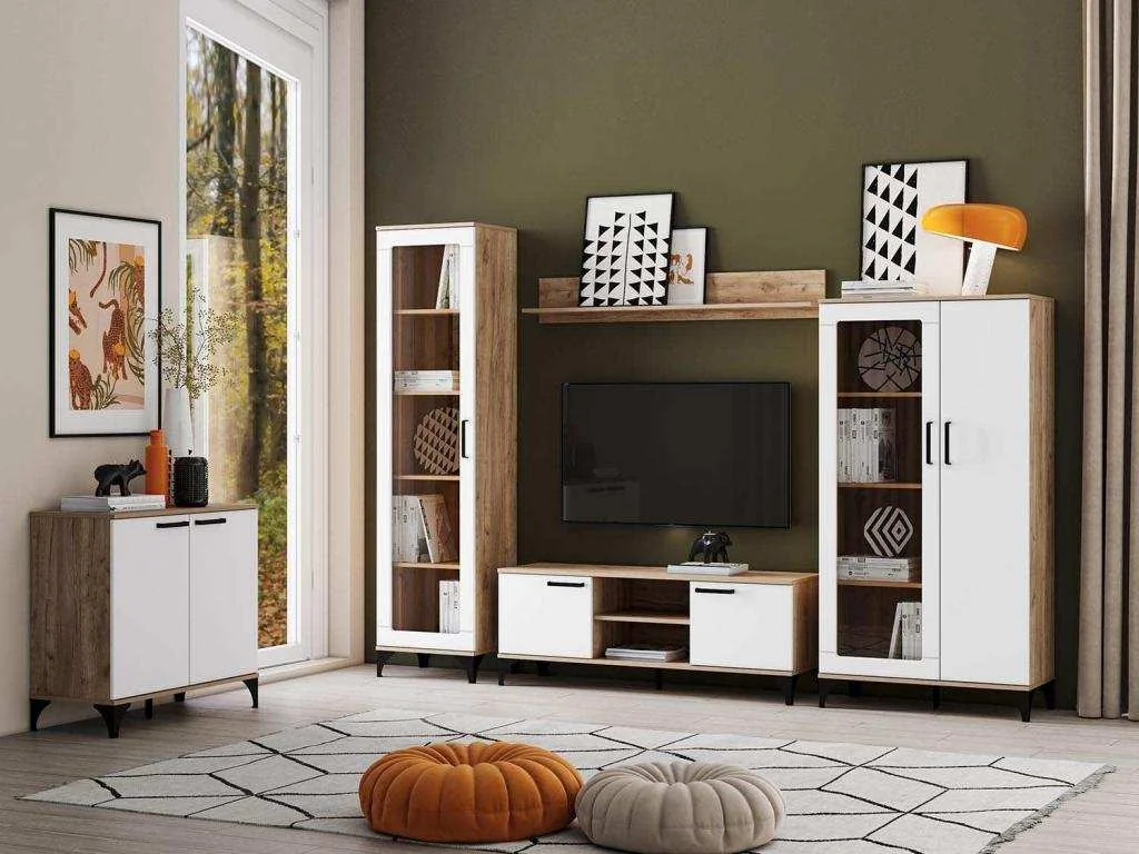 Марсель гостиная комплектация 1 Дуб Крафт табачный/Меренга — яркий и современный гарнитур для гостиной комнаты.