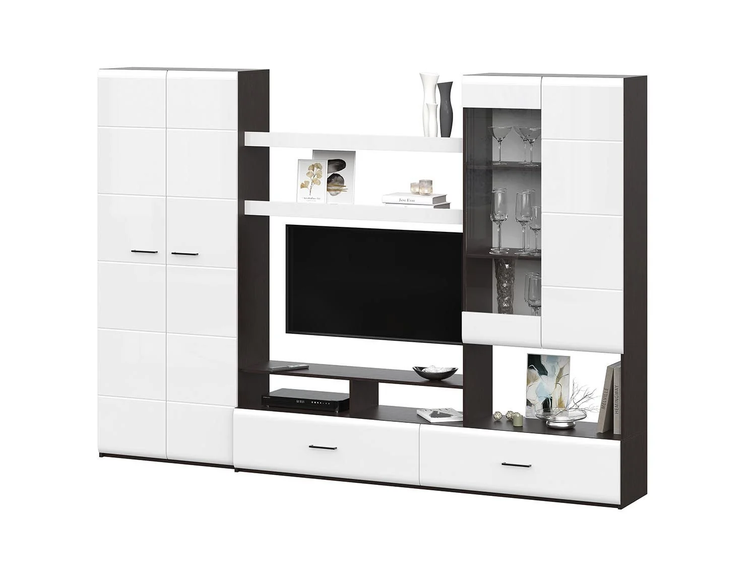 Мебель для гостиной МГС 7 + полки / Венге/Белый глянец — готовое решение для любой жилой комнаты.