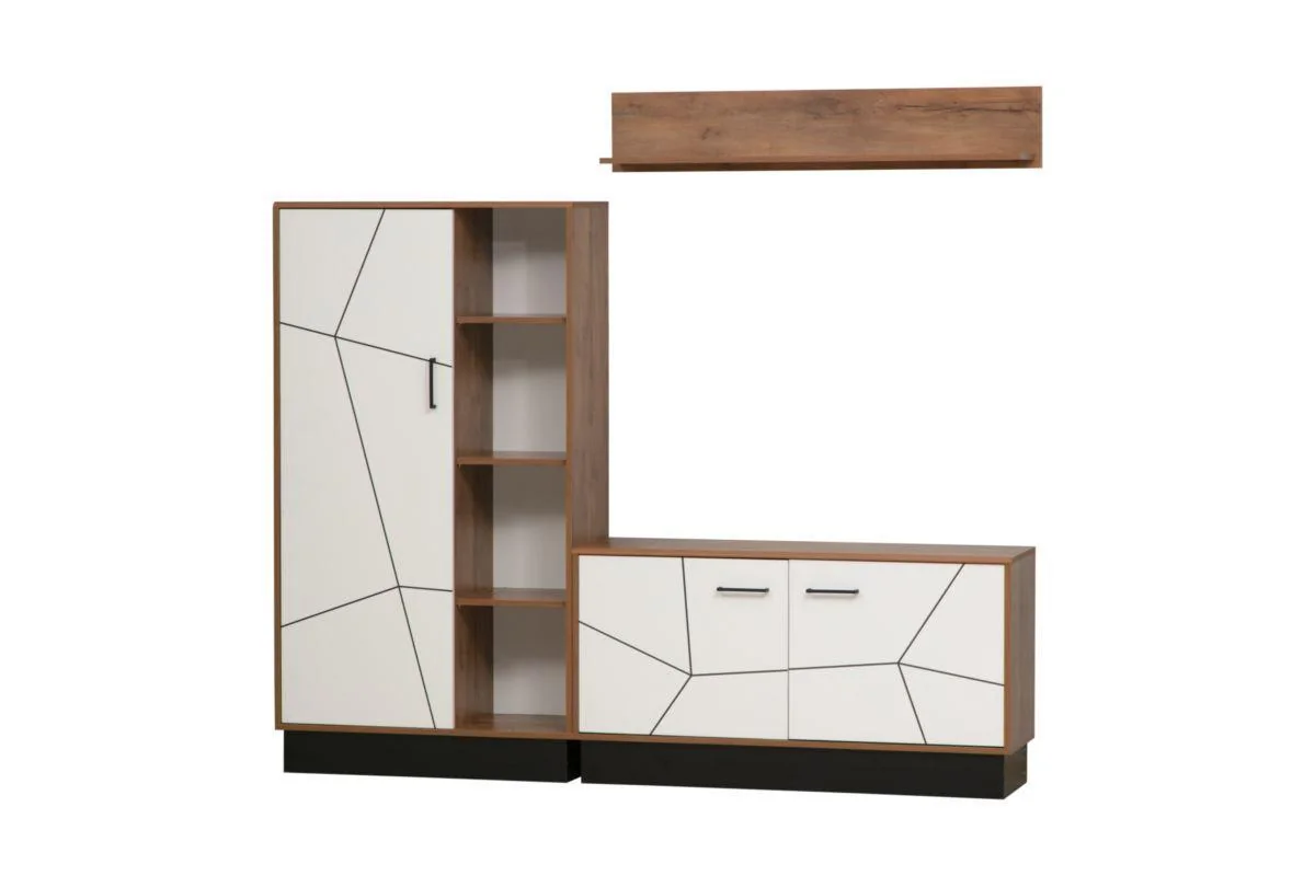 Современная модульная система для гостиной сделает комнату уютной и упорядочит все вещи. Ручки выполнены из пластика. Направляющие шариковые. Фасад комбинированный МДФ в пленке ПВХ с фрезеровкой УФ-печатью.