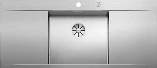 Симметричный дизайн с расположенной по центру основной чашей и крыльями мойки с обеих сторон