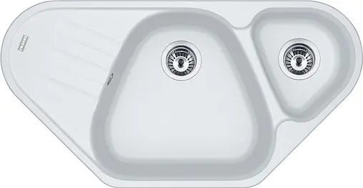 Эксклюзивная угловая мойка Franke AZG 661 E с эффектным дизайном очарует своим внешним видом и многофункциональностью. Она идеально впишется в угол с размерами 90х90 см. Так же её можно установить традиционным способом в базу не менее 105 см. Модель из суперпрочного материала Fragranite состоит из двух чаш — основной и дополнительной. Вверху расположено удобное крыло для сушки. Поверхность мойки имеет активную защиту от бактерий.