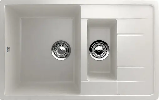 Мойка врезная, 80% мраморная крошка, 20% полиэфирная смола, защитное покрытие гелькоут, в комплекте сливная арматура c гофротрубой.
