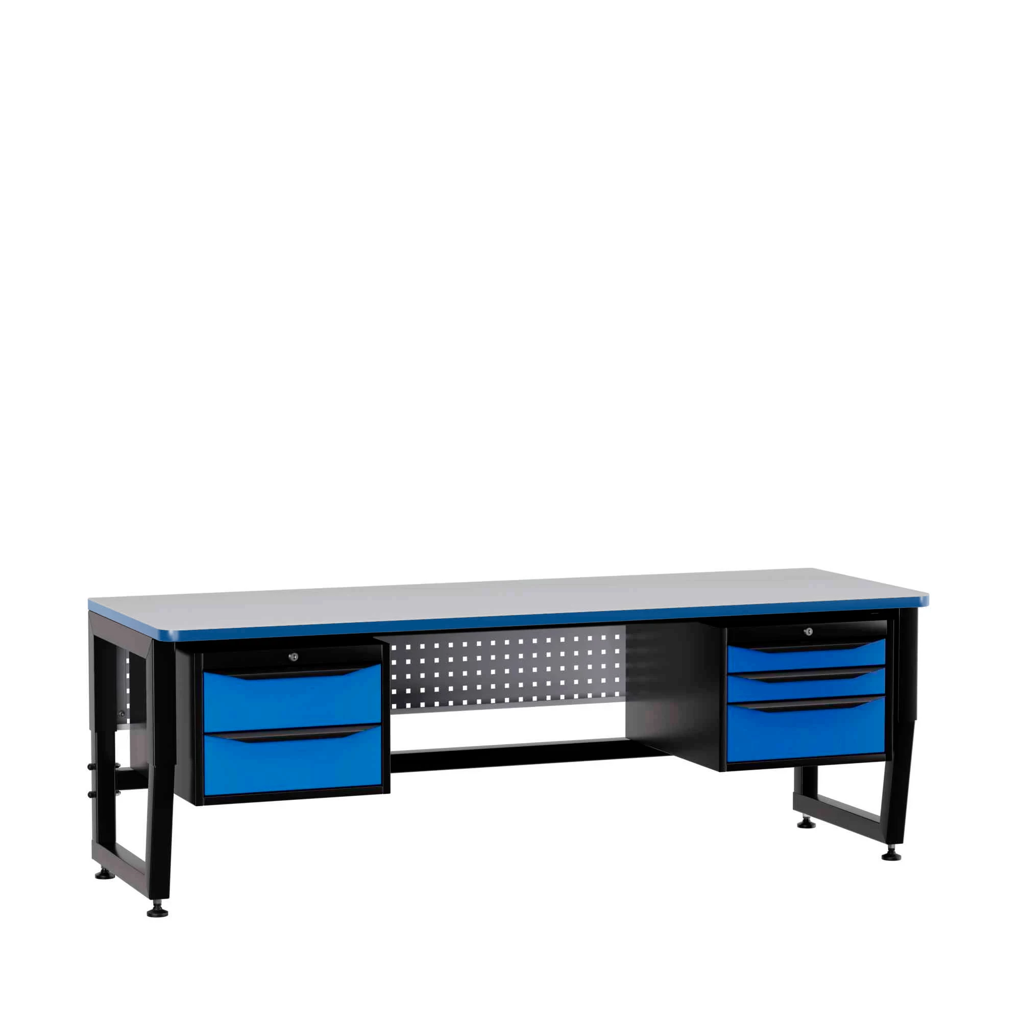 Столешница на основе МДФ толщиной 30 мм обеспечивает высокую механическую прочность и надежность. Поверхность монтажного стола выполнена из специального HPL пластика толщиной 1 мм, этот материал отличается высокой износостойкостью, устойчивостью к механическим повреждениям, влаге и химическим веществам. Нижняя часть столешницы изготовлена из БСП пластика толщиной 1 мм, а кромка покрыта ABS пластиком толщиной 2 мм, что обеспечивает дополнительную износостойкость и прочность всей конструкции.