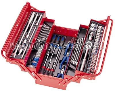 KING TONY Набор инструментов универсальный, раскладной ящик, 62 предмета