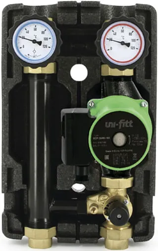 Насосные группы быстрого монтажа (далее ГБМ) Uni-Fitt предназначены для создания многоконтурных систем отопления с индивидуальными насосами в отдельных контурах. Такие системы характеризуются высокой стабильностью работы, повышенными комфортностью и надёжностью. Модульная конструкция обеспечивает компактность и простоту монтажа.