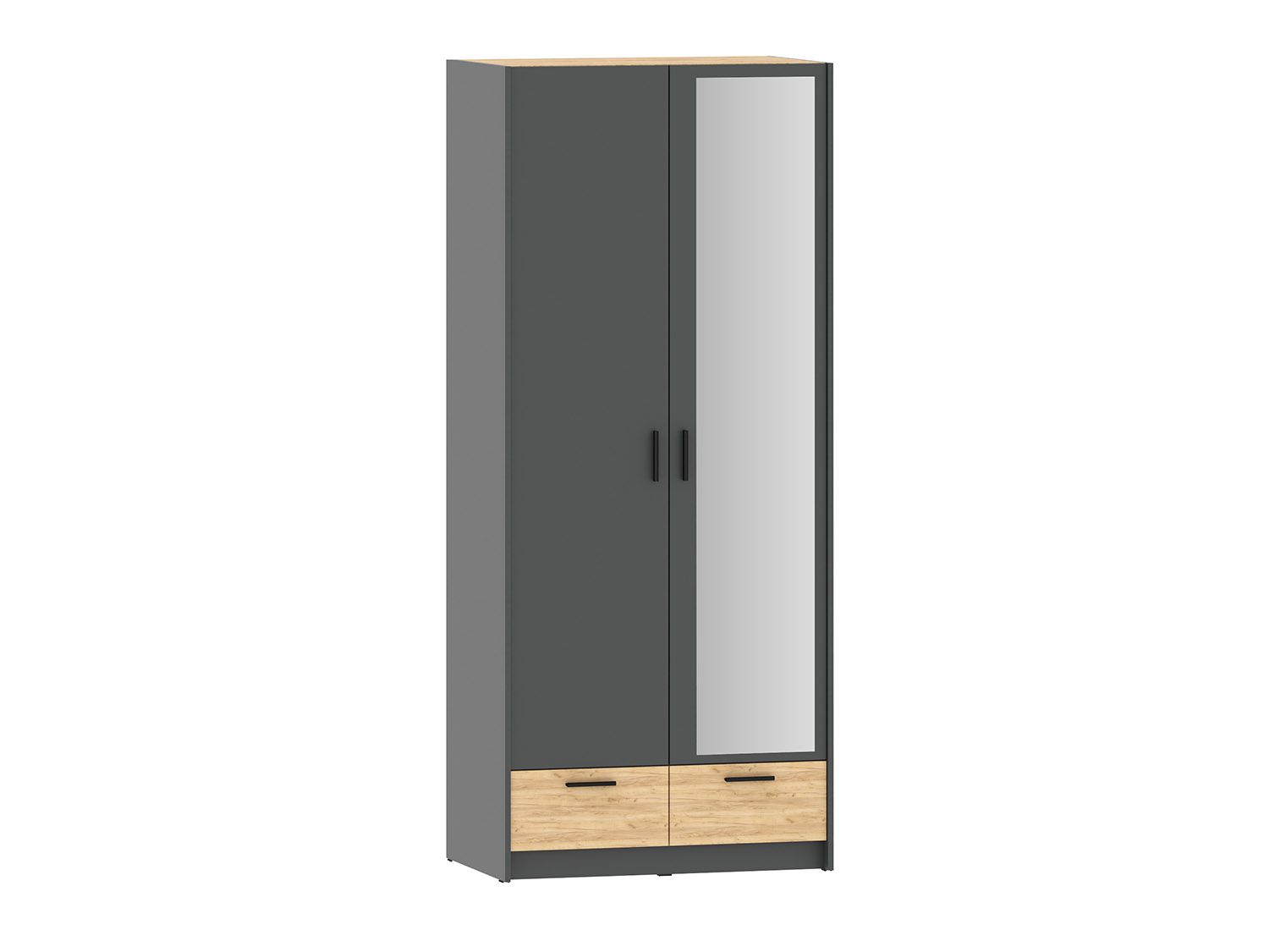 НМ 011.80 Шкаф для одежды с зеркалом Оттавия Антрацит/Дуб золотой — вместительная, современная система хранения одежды и других предметов.