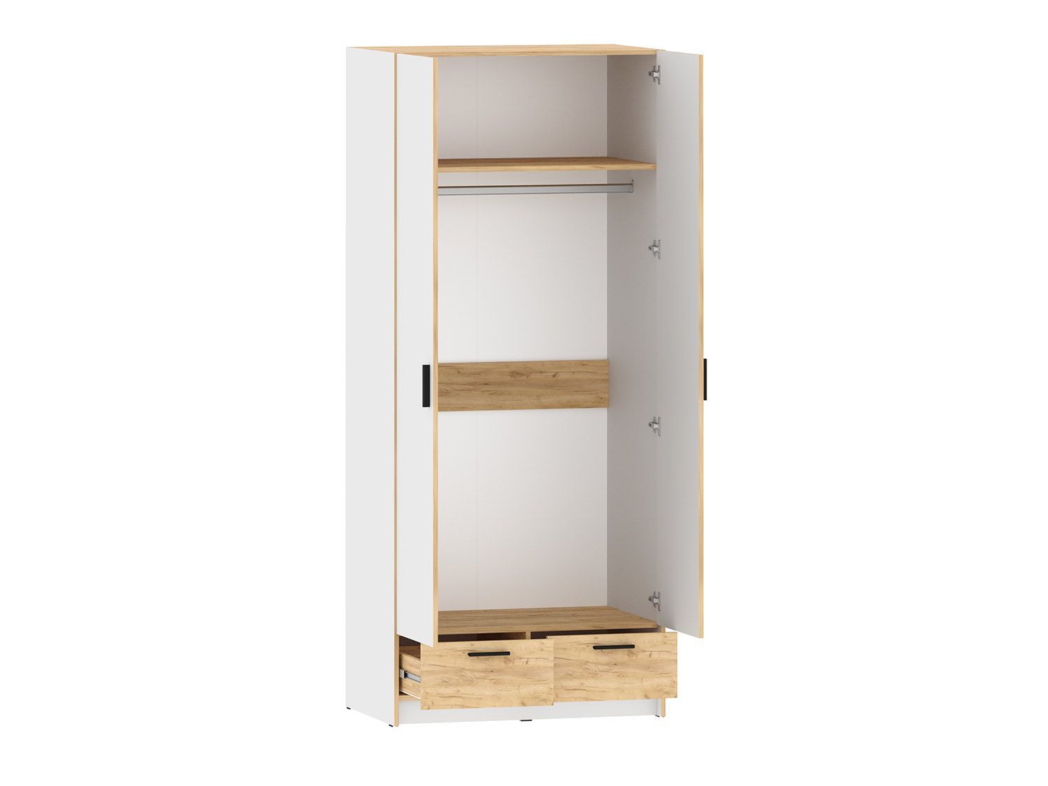 Шкаф оснащается гардеробной полкой и горизонтальной штангой для плечиков с одеждой.