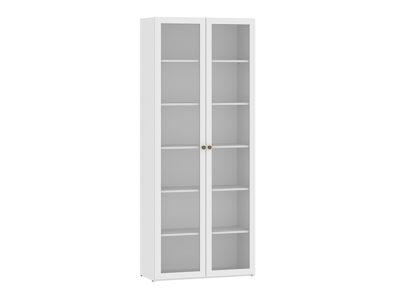 Шкаф оснащен шестью полками для хранения и 2-я распашными дверцами со стеклянной вставкой.