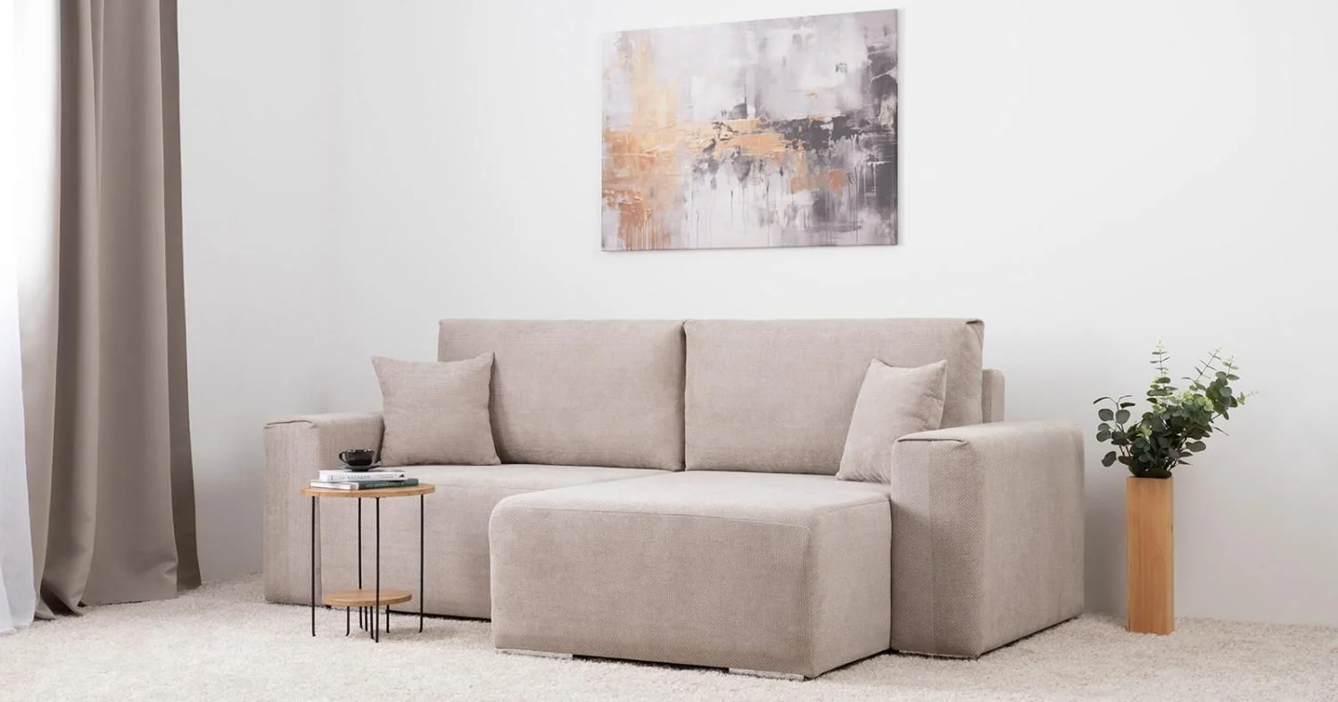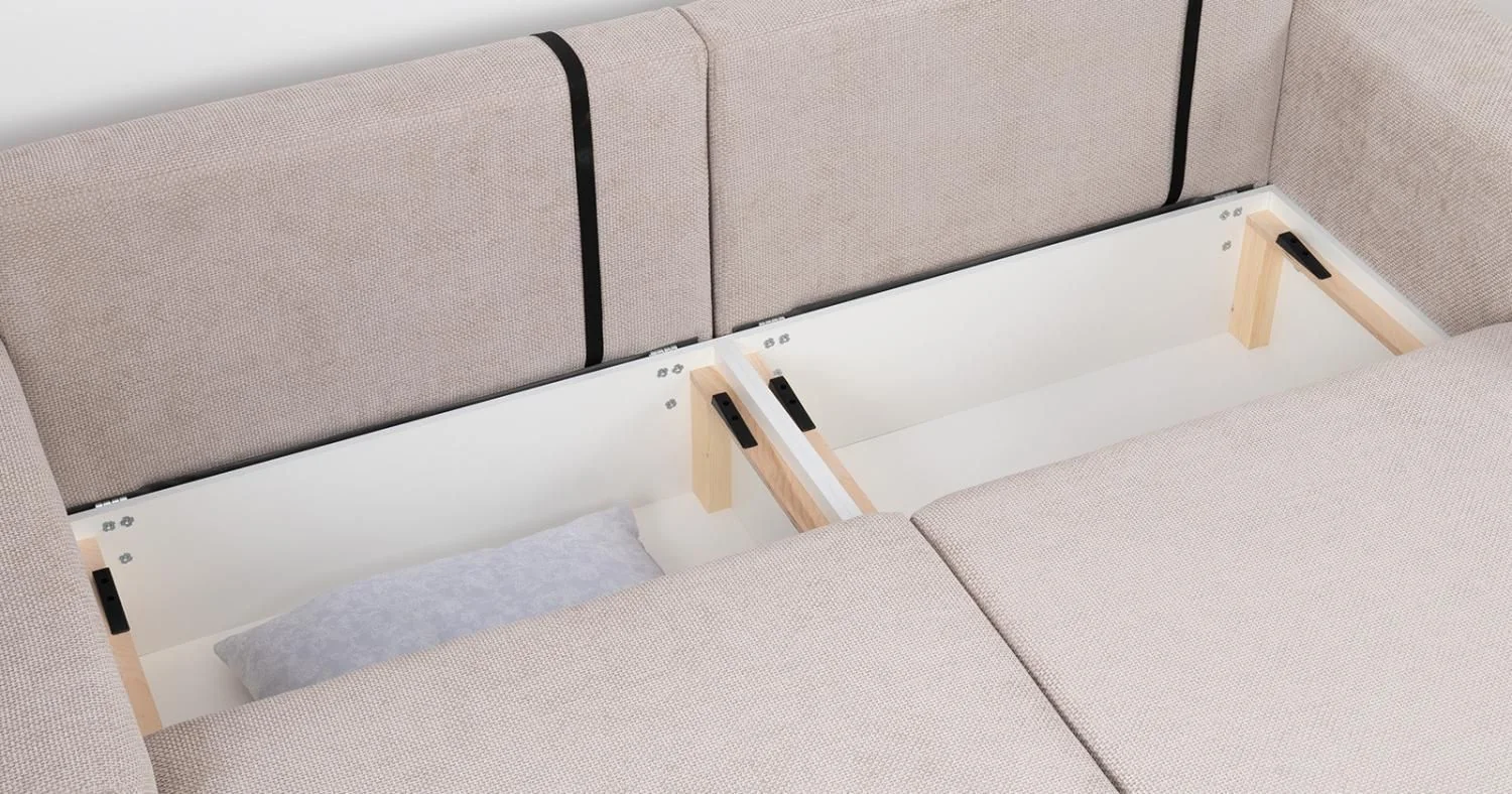 Компоновка 1 состоит из: оттоманки арт. ТО, дивана арт. ТД, широкого подлокотника арт. ТБ, широкого подлокотника с ящиком арт. ТБ, двух приспинных подушек и двух декоративных подушек.