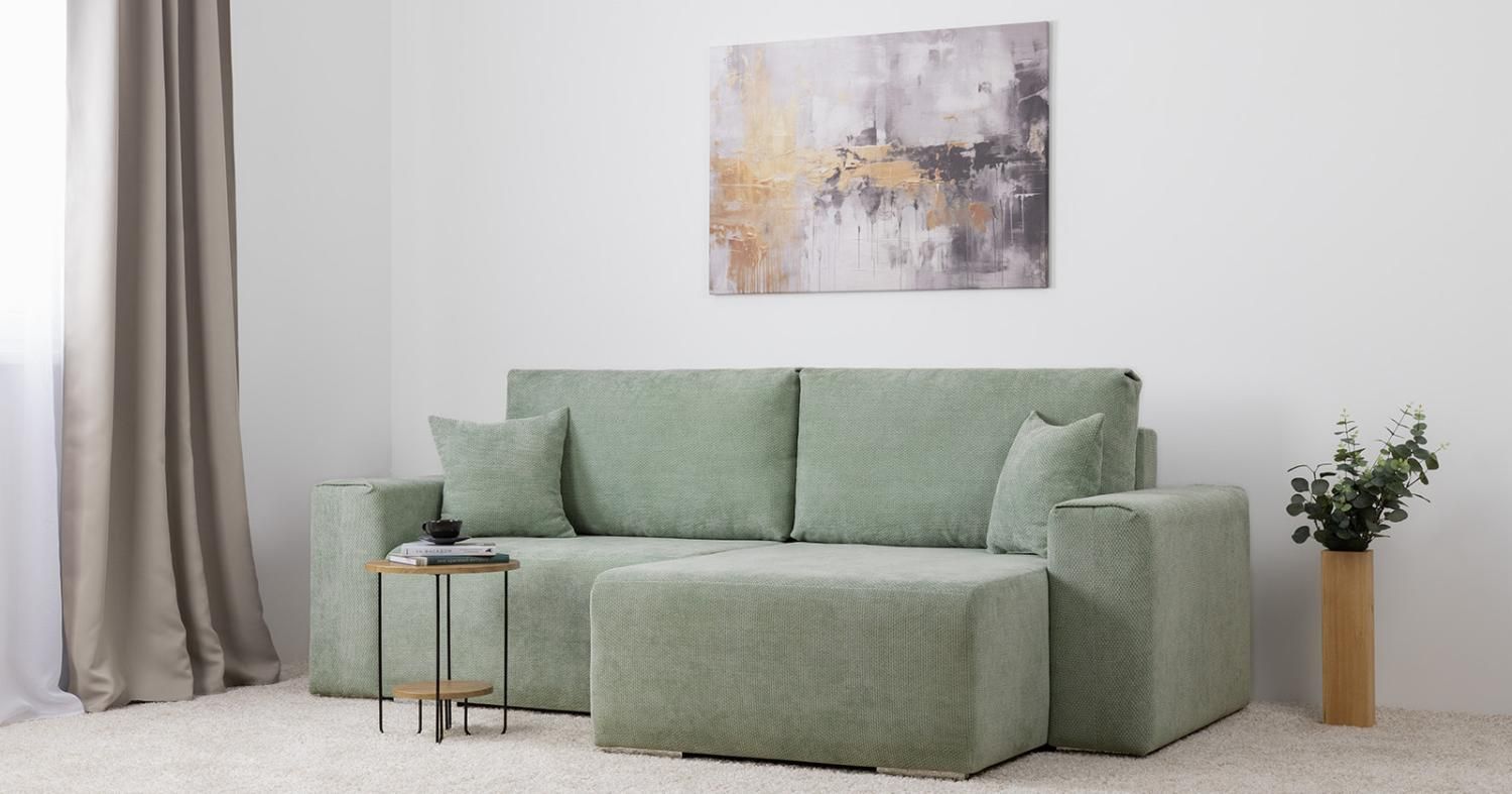 Компоновка 1 состоит из: оттоманки арт. ТО, дивана арт. ТД, широкого подлокотника арт. ТБ, широкого подлокотника с ящиком арт. ТБ, двух приспинных подушек и двух декоративных подушек.