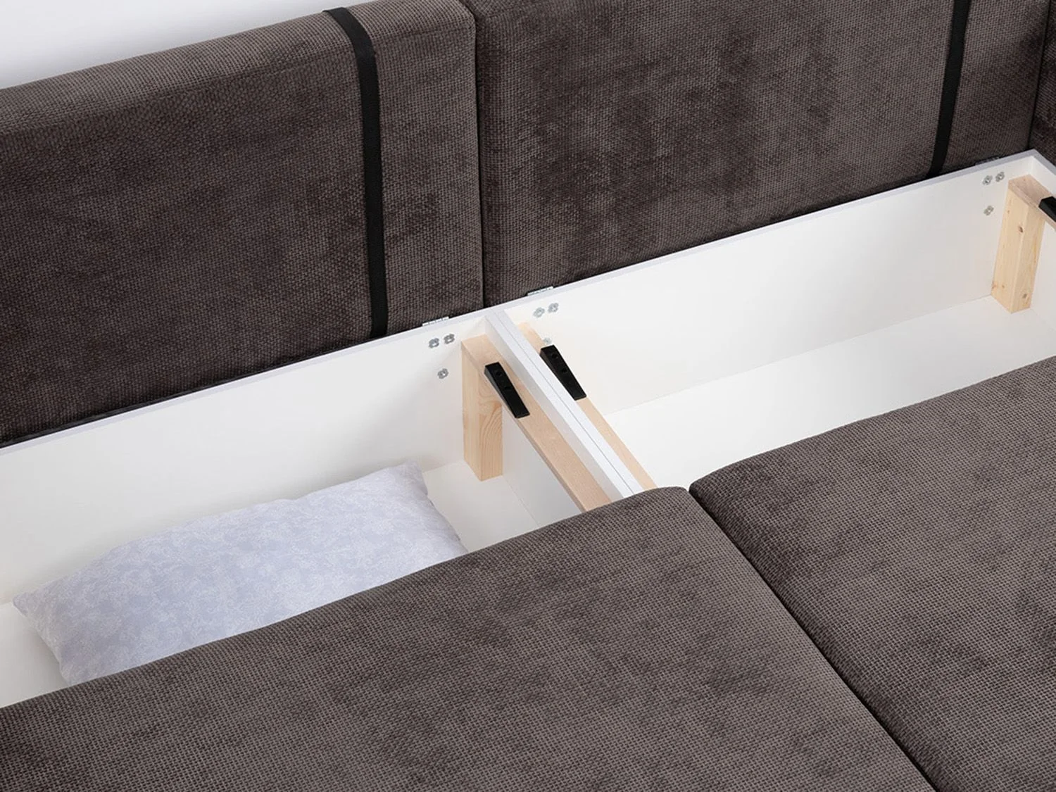 Компоновка 2 состоит из: оттоманки арт. ТО, 2-х диванов арт. ТД, широкого подлокотника арт. ТБ, широкого подлокотника с ящиком арт. ТБ, 3-х приспинных подушек и двух декоративных подушек.