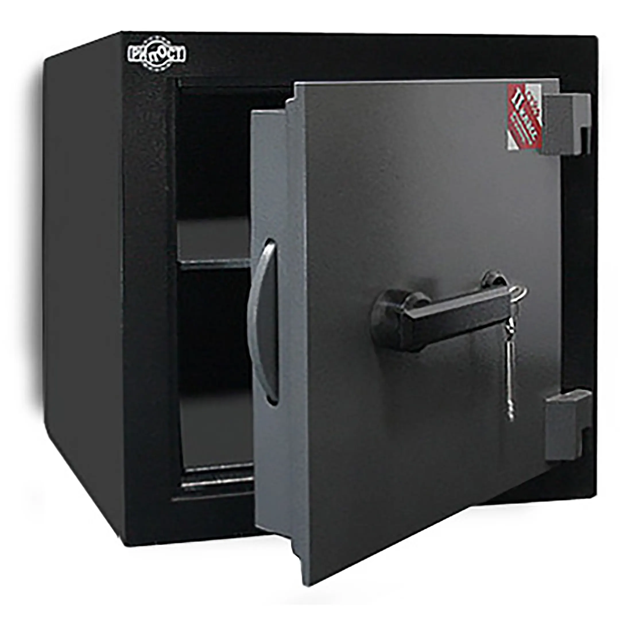 корпус сейфа имеет усиленный двухслойный сварной стальной каркас, выполненный из листовой стали и заполненный специальным бетоном;